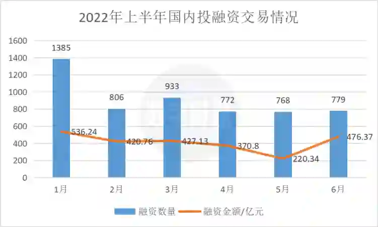 2022年上半年国内投融资交易情况(36氪制图,数据源于天眼查)