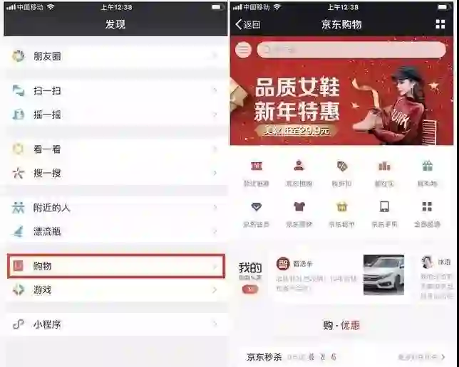 比如说,腾讯一直在不遗余力地整合京东在微信发现频道中的“购物”入口内的多项资源,目的就是为了扩大微信的电商渠道,以期带来更多的用户流量。