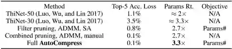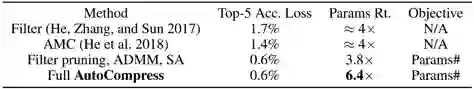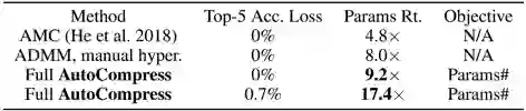 与其他方法相比,AutoCompress 的效果超过各种神经网络压缩方法与框架。