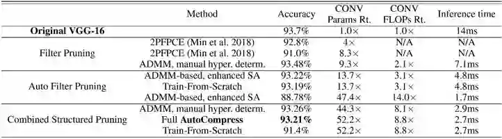 表 3. 在 VGG-16 上基于 ImageNet 数据集的结构化权重剪枝
