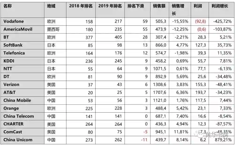 其实哪里只是电信设备供应商的日子不好过啊,运营商自己的日子也很困难。从今年500强的运营商数据来看,排名基本都是下滑的,部分运营商的销售额也出现了下滑,盈利能力下降。在这种情况下,美国政府希望各国运营商引刀自宫跟着他们围剿华为5G,怎么可能?
