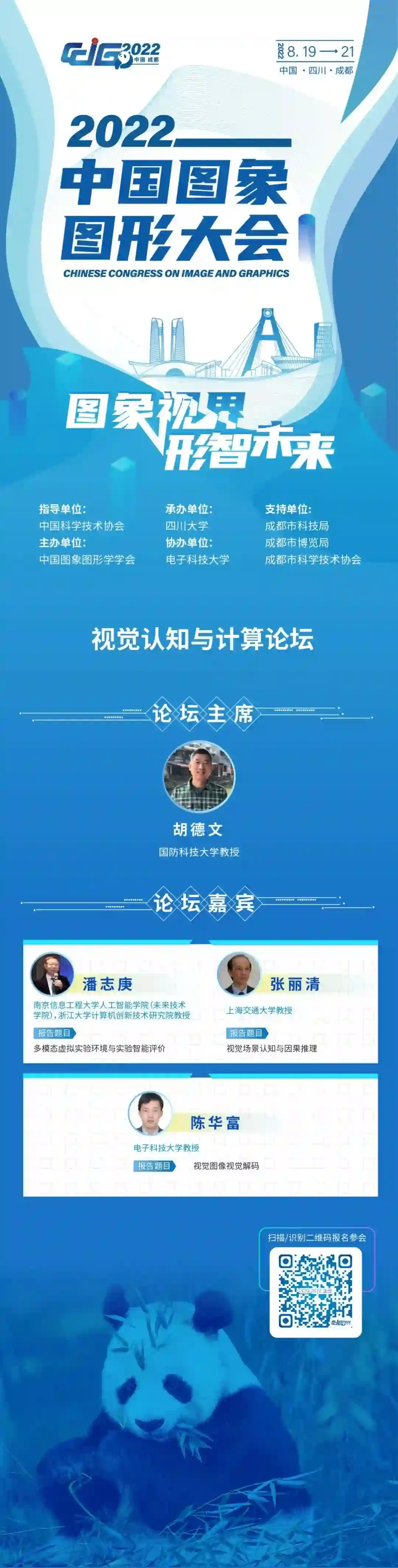 中国图象图形大会(CCIG 2022)将于2022年8月19-21日在成都盛大举办,大会以“图象视界,形智未来”为主题,由中国科学技术协会作为指导单位、中国图象图形学学会主办、四川大学承办、电子科技大学协办。