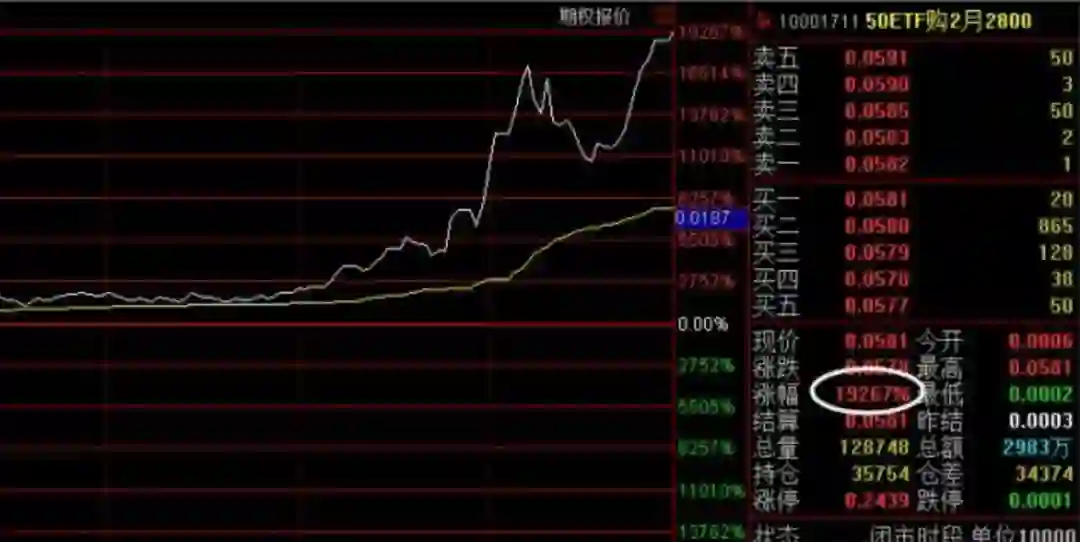 2019年2月25日,上证50ETF购2月2800合约暴涨19267%,及一天暴涨192倍,上演了一场一夜暴富的现实美梦。