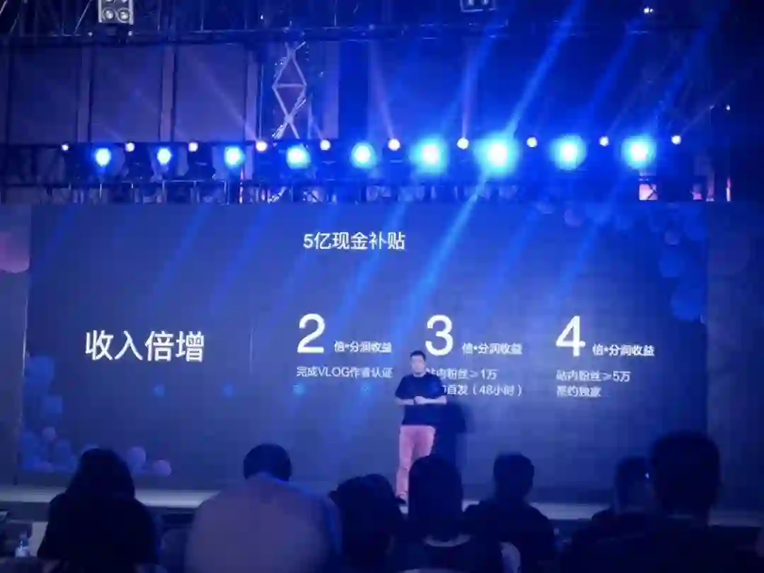 以百度为例,在今年5月份的“百度联盟生态合作伙伴大会”上,百度宣布提供5亿元现金补贴,20亿流量扶持Vlog创作者。