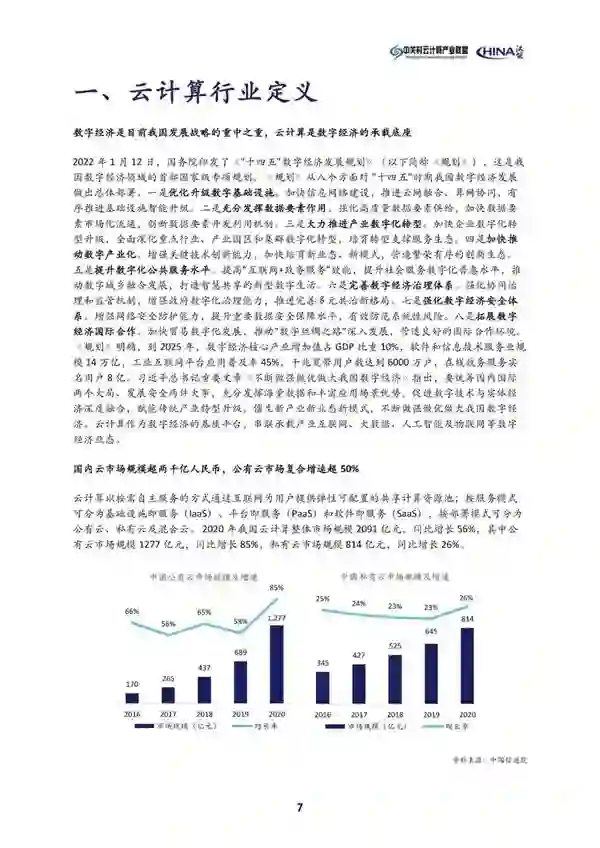蓝皮书首先对云计算行业进行了界定——以按需自主服务的方式通过互联网为用户提供弹性可配置的共享计算资源池,按服务模式可分为基础设施即服务(IaaS)、平台即服务(PaaS)和软件即服务(SaaS),按部署模式可分为公有云、私有云及混合云。