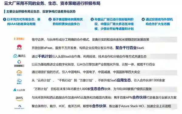 趋势七:云大厂采用不同的业务、生态、资本策略进行积极布局。