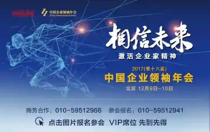 2017(第十六届)中国企业领袖年会将于12月9日至10日在北京举行,VIP席位有限,先到先得,点击图片即可报名。