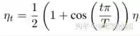 这里,η代表初始设置的学习率。这种学习率递减的方式称之为cosine decay。