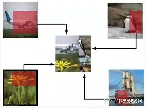 Random image cropping and patching 方法随机裁剪四个图片的中部分,然后把它们拼接为一个图片,同时混合这四个图片的标签。RICAP在caifar10上达到了2.19%的错误率。