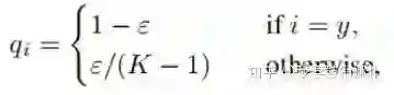 其中,ε是一个小的常数,K是类别的数目,y是图片的真正的标签,i代表第i个类别,q_i是图片为第i类的概率。