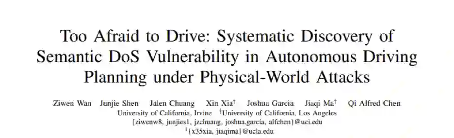 这项将在 4 月底正式发表于 NDSS 2022(计算机安全四大顶会之一)的研究,揭示了自动驾驶场景下多个以前未知的语义 DoS 漏洞。