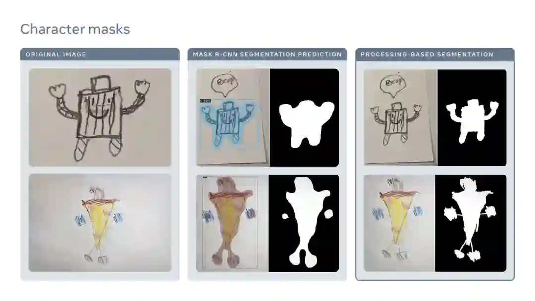 不过,虽然现有的目标检测技术在区分儿童绘图上的人物时非常有效,但是产生的分割mask不够精确,无法用于动画。