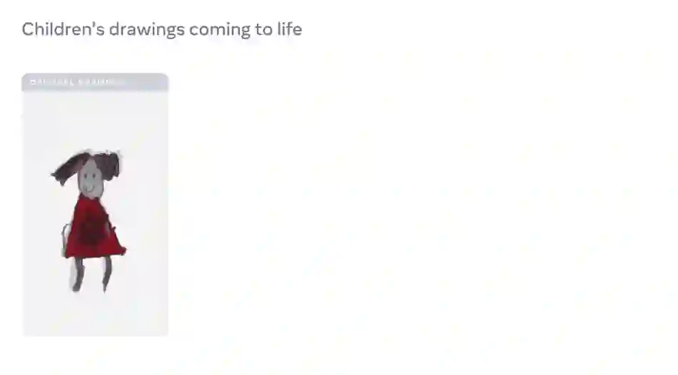 只需将孩子的手绘上传给Meta AI,就可以看到它们变成会跳舞的角色,十分逼真。