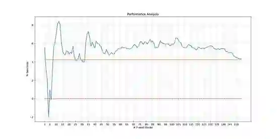 该模型的一个良好的baseline已经在N = 154中被确定:这代表了所有股票的通用表现,它模拟了我们在所有股票上平均分配资本的情景。这产生了大约4.27%的收益。