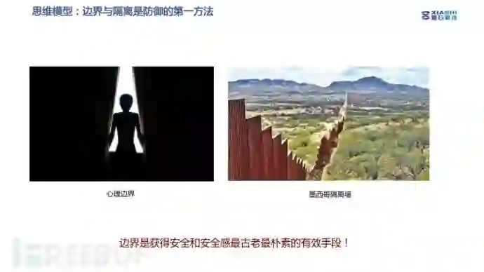 与美国边界的隔离墙。无论是我们所说远古的长城还是到现在的墨西哥和美国边境之间的隔离墙,边界和隔离都是非常有效的一种最古老、最朴素的技术手段,到现在还在运用。划定边界,以界隔离,大道至简。