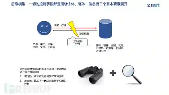 下面我们再来看这个访问控制模型,就是一切的控制手段,都是围绕主体、客体、信息流三个要素展开。
