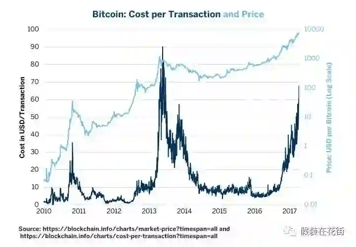 2010年,比特币价格在30美元左右,交易成本上升到30美元。