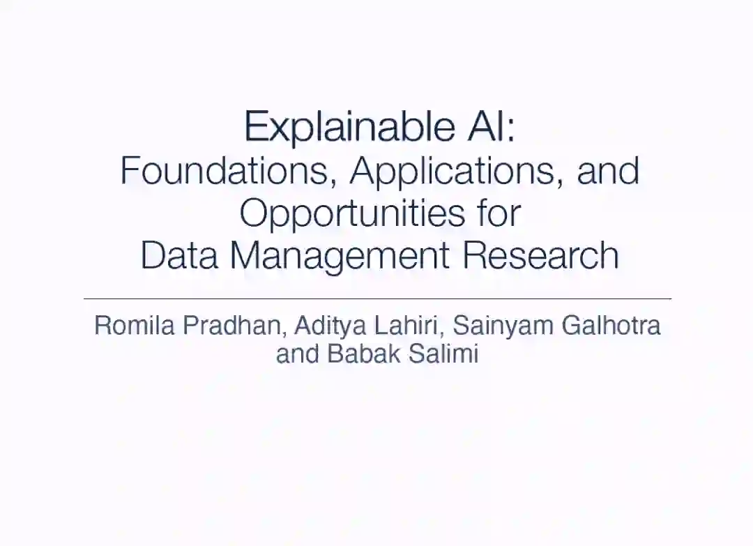 可解释性是构建可信人工智能系统的必要元素。来自普渡大学等几位学者在SIGMOD2022《可解释的人工智能》教程,130+PPT阐述XAI的基础、应用、机会,非常值得关注!