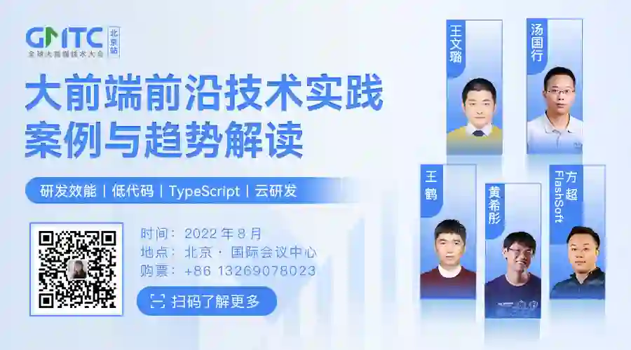 今年 8 月,GMTC 全球大前端技术大会将继续在线下与大家见面。来自阿里、腾讯、字节等一线大厂的 50+ 技术专家现场分享,邀你一同探索大前端发展的最新技术趋势与热点方向。
