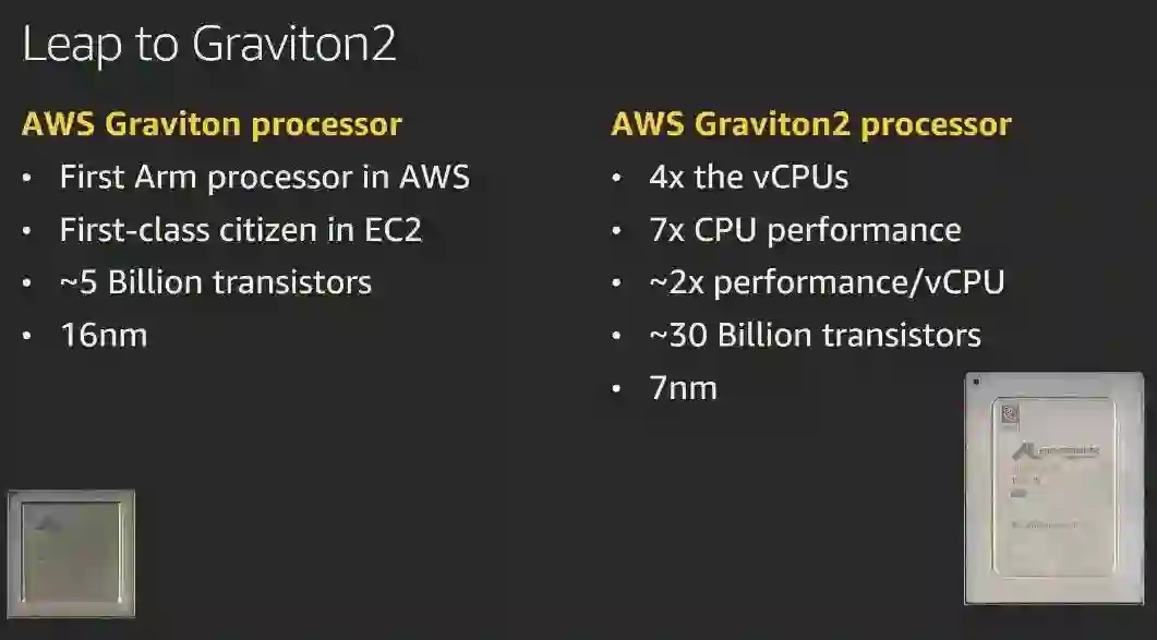 AWS 的上一代面向计算密集任务的处理器 Graviton 2 于2019 年 12 月发布,而最初代的基于 Arm 架构的 Graviton 则在 re:Invent 2018 上亮相。