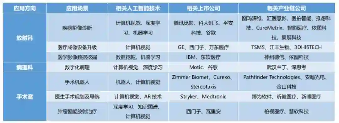 2. 人工智能在医学影像应用领域不断拓宽:除疾病的鉴别诊断外,还可应用于分子及细胞层面图像处理、应用于介入影像学、助力非外科手术方法诊断及治疗等。