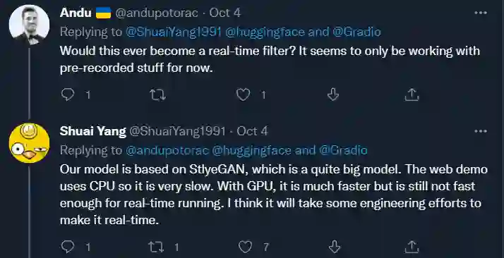 当被问及能否当实时滤镜用时,作者表示:目前模型还很大,做到实时还需要一些工程努力。