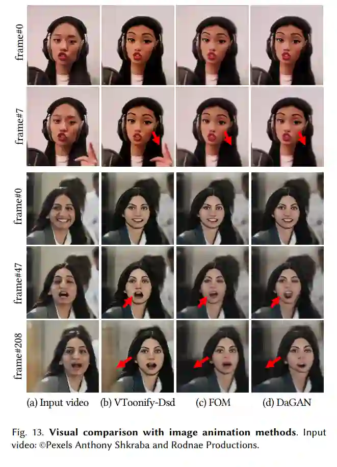 除了原始的高级风格代码外,他们还训练编码器提取输入帧的多尺度内容特征作为生成器的附加内容条件,以便在风格转换过程中更好地保存帧的关键视觉信息。