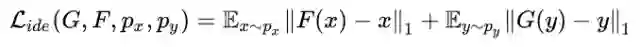 此外,作者还引入了 target domain identity loss【9】来进一步约束源域S 和目标域T 之间映射关系的学习 。该loss具体为:假定一个generator是从域S 映射到域T ,那么来自于域T 的样本通过该generator得到的还是该样本。公式1为target domain identity loss。作者实验发现,该loss能够使得迁移前后的图像在颜色组成上保持一致。