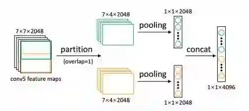 此外作者提出了LMP (Local Max Pooling)来进一步提升re-ID模型在target dataset上性能的方式。LMP不需要训练,只需要在测试的时候直接使用就行。如图4所示,LMP先把ResNet-50的CONV5特征按overlap为一个像素的方式划分成P(图4中P为2)个部分,然后分别对P个部分做Global Max Pooling (GMP),最后concatenate P个pooling的结果作为最后的图像描述子。实验表明,P最大为6时性能最好,为此作者在实验时P都取6。(值得注意的是,当P=1且采用Global Average Pooling的时候,得到的是ResNet-50的Pool5特征)