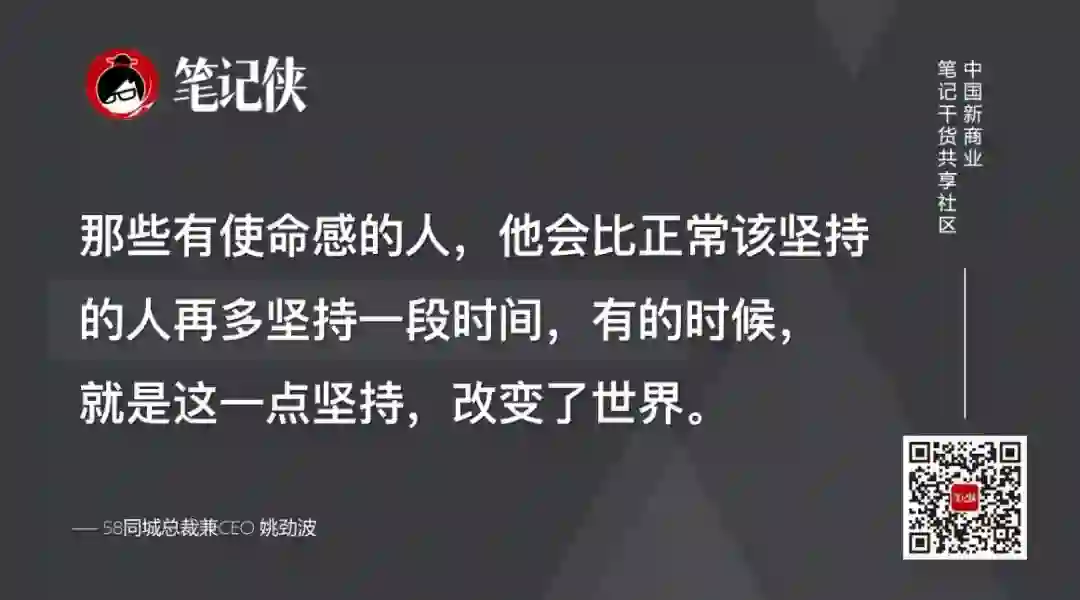 而那些有使命感的人,他会比正常该坚持的人再多坚持一段时间,有的时候,就是这一点坚持,改变了世界。