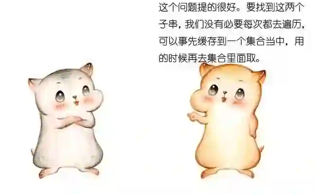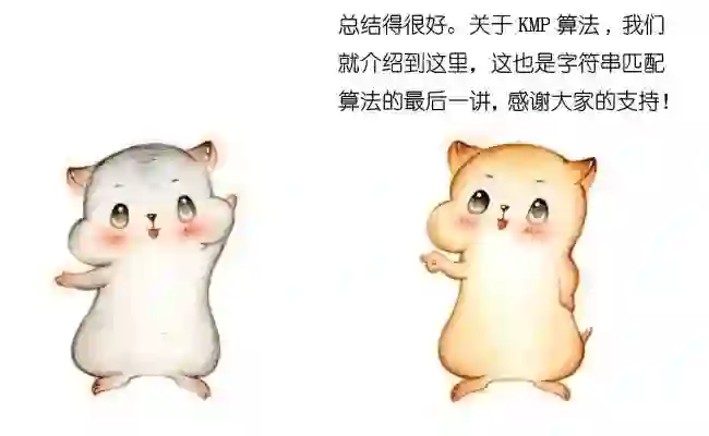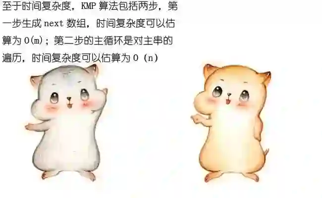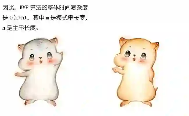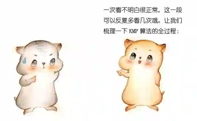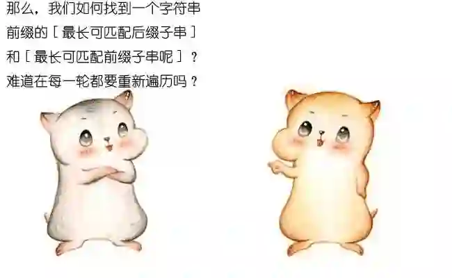 在下一轮的比较时,只有把这两个相同的片段对齐,才有可能出现匹配。这两个字符串片段,分别叫做最长可匹配后缀子串和最长可匹配前缀子串。