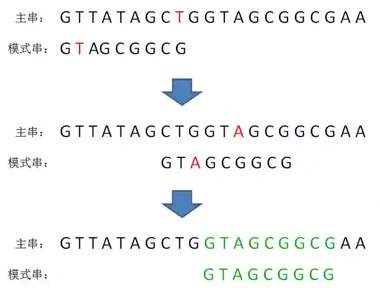 显然,主串的字符A仍然是坏字符,这时候的匹配前缀缩短成了GTG: