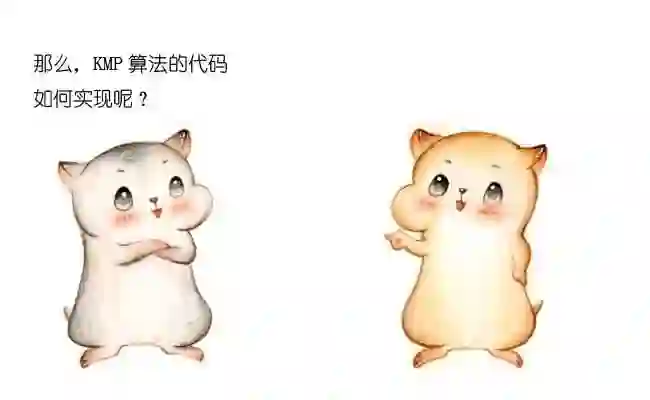 如图所示,我们设置两个变量i和j,其中i表示“已匹配前缀的下一个位置”,也就是待填充的数组下标,j表示“最长可匹配前缀子串的下一个位置”,也就是待填充的数组元素值。