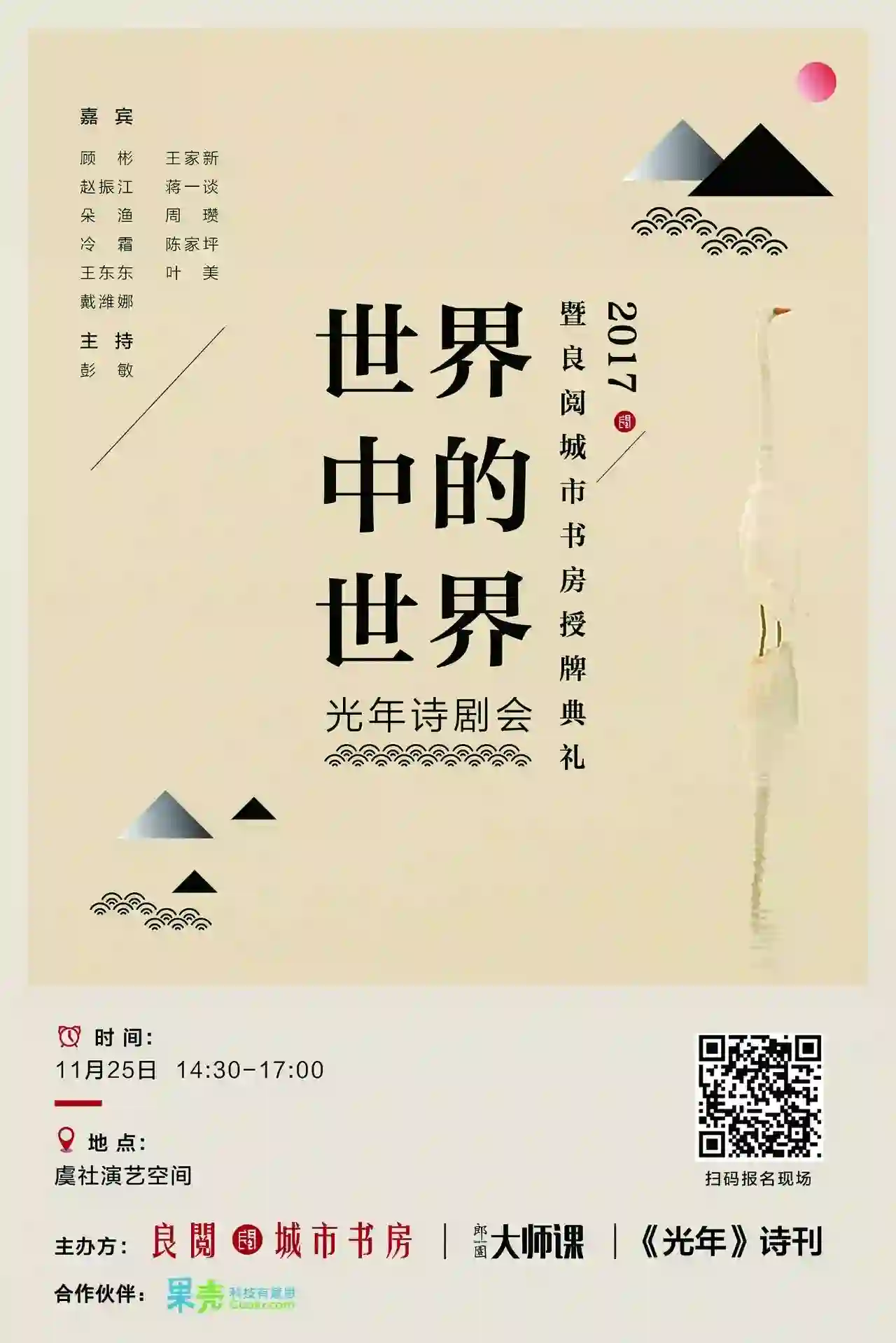 11月25日,12位中国诗歌界大咖,如著名汉学家、诗人顾彬,截句之父、小说家蒋一谈等将齐聚郎园Vintage,与大家共同讨论诗歌与翻译的关系,并对新世纪以来汉语“翻译艺术”进行回溯、讨论与再整理。