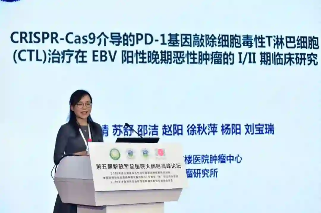 来自南京鼓楼医院的魏嘉教授为我们带来了《CRISPR-Cas9介导的PD-1基因敲除细胞毒性T淋巴细胞(CTL)治疗在EBV阳性晚期恶性肿瘤的I/II期临床研究》:EBV相关恶性肿瘤具有高水平的PD-L1基因扩增及蛋白水平的表达。这一类型的肿瘤患者有望成为PD-1、PD-L1免疫卡控点阻断治疗的优势人群之一。研究结果证实,PD-1敲除的EBV抗原特异性CTL有着更强的免疫应答水平;对EBV阳性的肿瘤细胞株有着更强的杀伤作用;动物试验证实体内安全性较好。基于此一项针对EBV阳性的晚期胃癌、鼻咽癌、淋巴瘤患者一线药物治疗失败后采用CRISPR-Cas9介导的PD-1基因敲除的CTL免疫细胞治疗的临床研究,期待通过该新技术实现对体内残余肿瘤细胞的杀伤,延长晚期胃癌、鼻咽癌、淋巴瘤患者的预后,使免疫治疗更加个体化、精细化。