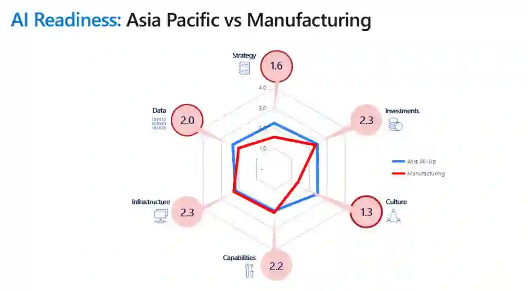 Kirshan 表示:「与亚太地区的总体准备情况相比,制造业在战略、数据和文化方面还有短板。企业领导人必须重点关注这些领域,以保持竞争力」。