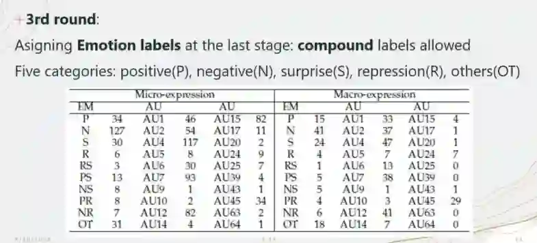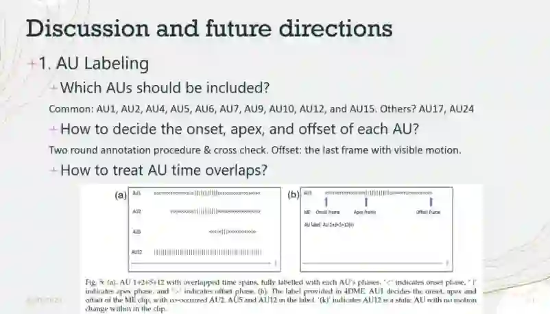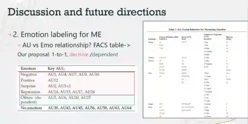 要性。李博士列出并深入讨论了与微表情注释相关的几个关键问题,特别是关于AU和微表情情感类别之间的关系。李博士提出了一个初步的AU-Emo映射表,并给出了合理的解释和支持性的实验结果。
