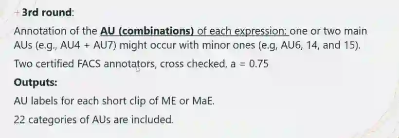 在4DME中,微表情和宏表情的视频片段都被标注出来,22个AU标签和5类情感标签被标注出来