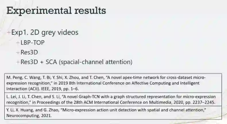贲教授还提出被试独立和被试依赖两种微表情识别性能的评测方法,应用代表性方法在MMEW进行了统一公平比较。