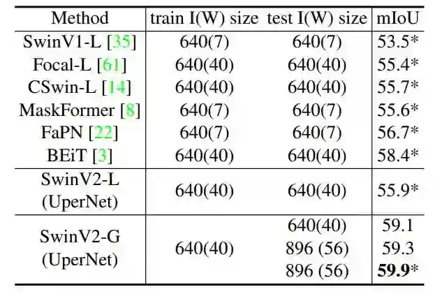 视觉大模型的另一难题在于许多下游视觉任务需要高分辨率的输入图像或注意力窗口。由于预训练往往在低分辨率下进行,所以在高分辨率的下游任务上进行微调的窗口大小会产生显著变化。目前常见的做法是对位置偏置(position bias)进行双立方插值,这是一种随意的简单处理方式,其效果并不是最佳的。