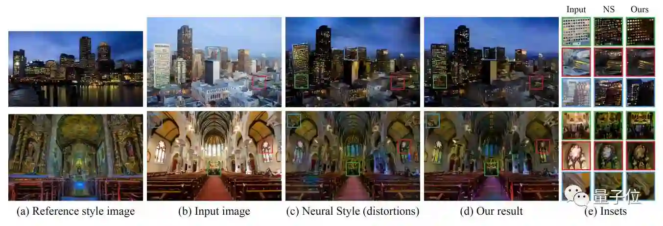 今年4月,美国康奈尔大学和Adobe的一个研究团队Fujun Luan和Sylvain Paris等人,在arvix上通过论文“Deep Photo Style Transfer”,提出了一种叫做“深度摄影风格转换”的演化技术,能将一张照片的风格,迁移到另一张照片中,下图就是原论文中给出的实际示例。