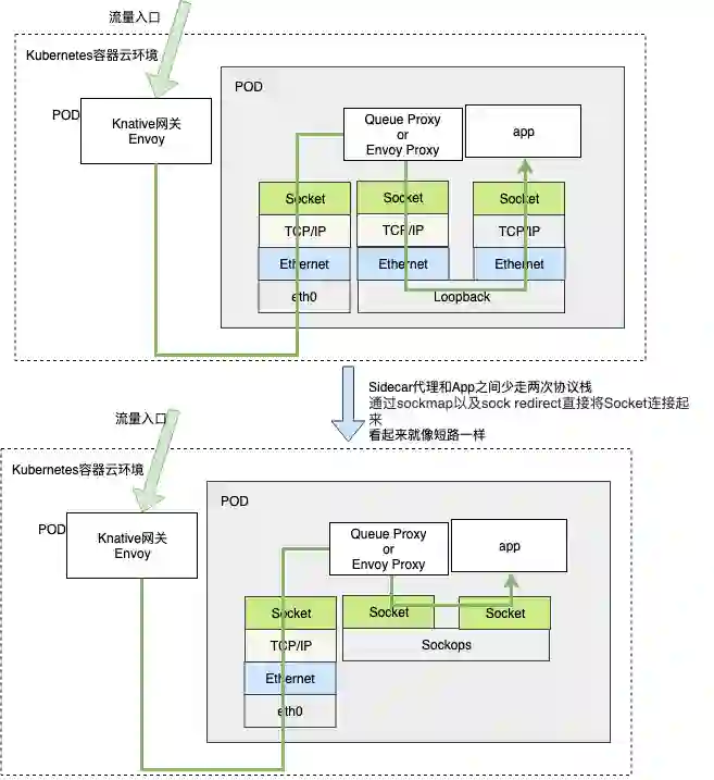 经过对 Queue Proxy-> App 路径分析,有两种优化方法,阐述如下: