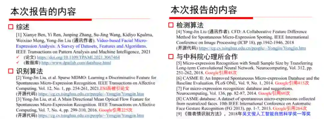 刘教授主要基于他作为通讯作者发表在IEEE Transactions on Pattern Analysis and Machine Intelligence上的《Video-based Facial Micro-Expression Analysis: A Survey of Datasets, Features and Algorithms》、他们团队在微表情识别与检测算法的相关文章以及和中国科学院心理研究所的合作成果进行介绍,并对未来的工作进行了展望。