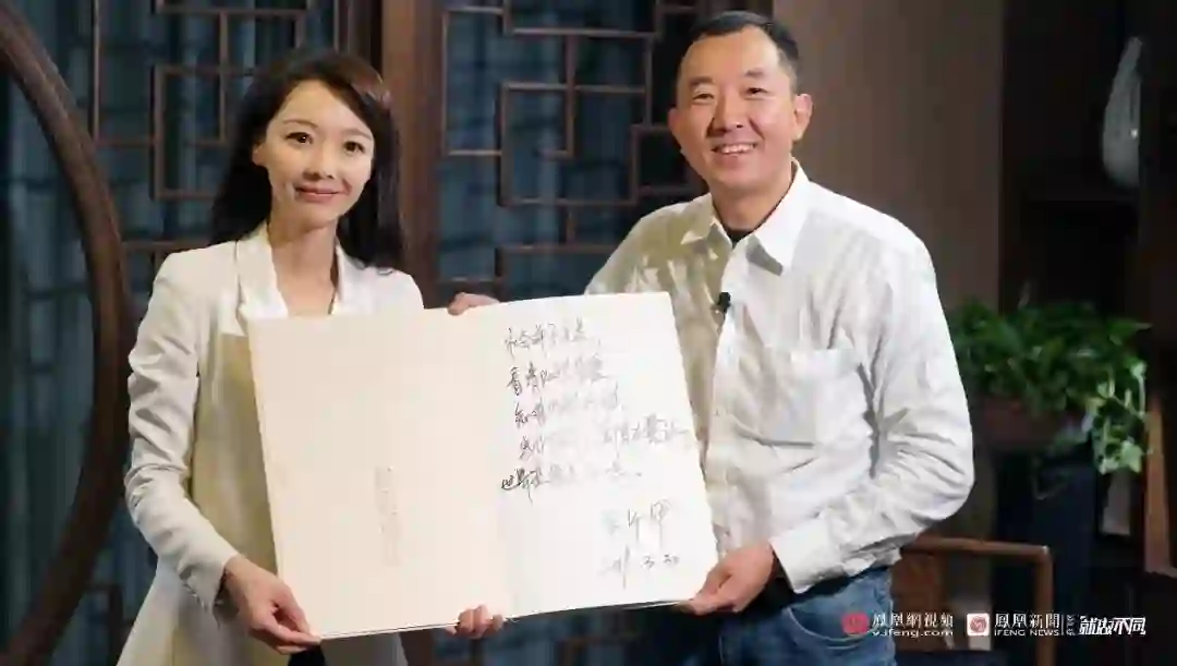 (陈行甲接受凤凰网《舍得智慧讲堂》采访 与主持人胡玲合影)