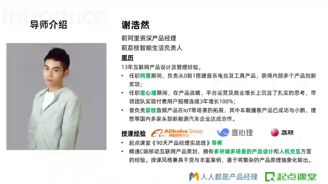 本次课程,我们特邀前阿里资深产品经理@谢浩然老师授课。
