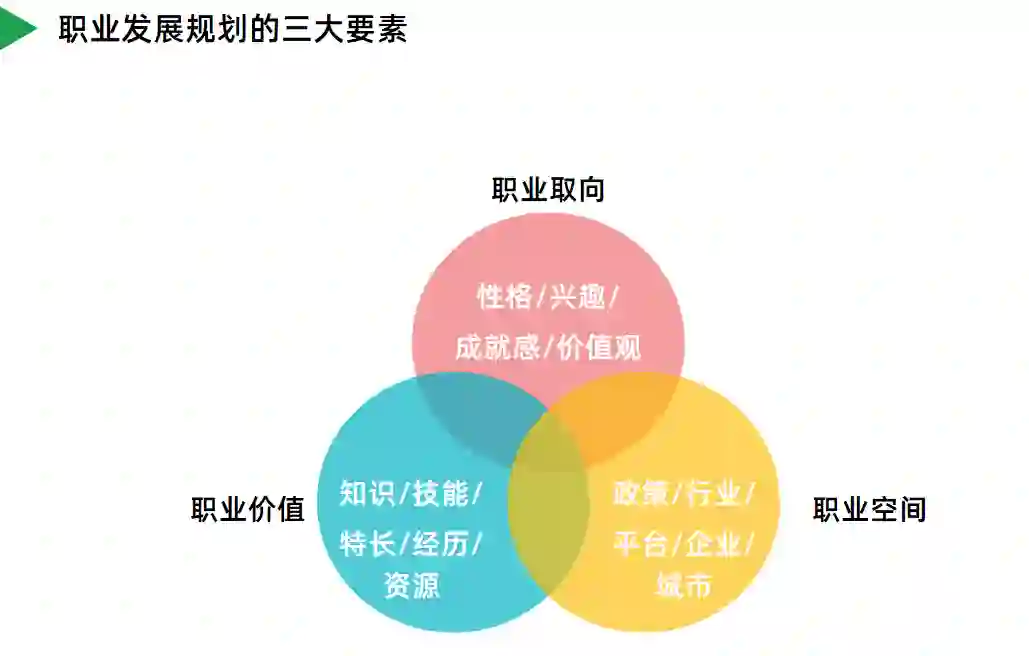 谢浩然老师将从职业取向、职业价值、职业空间三大职业规划要素出发: