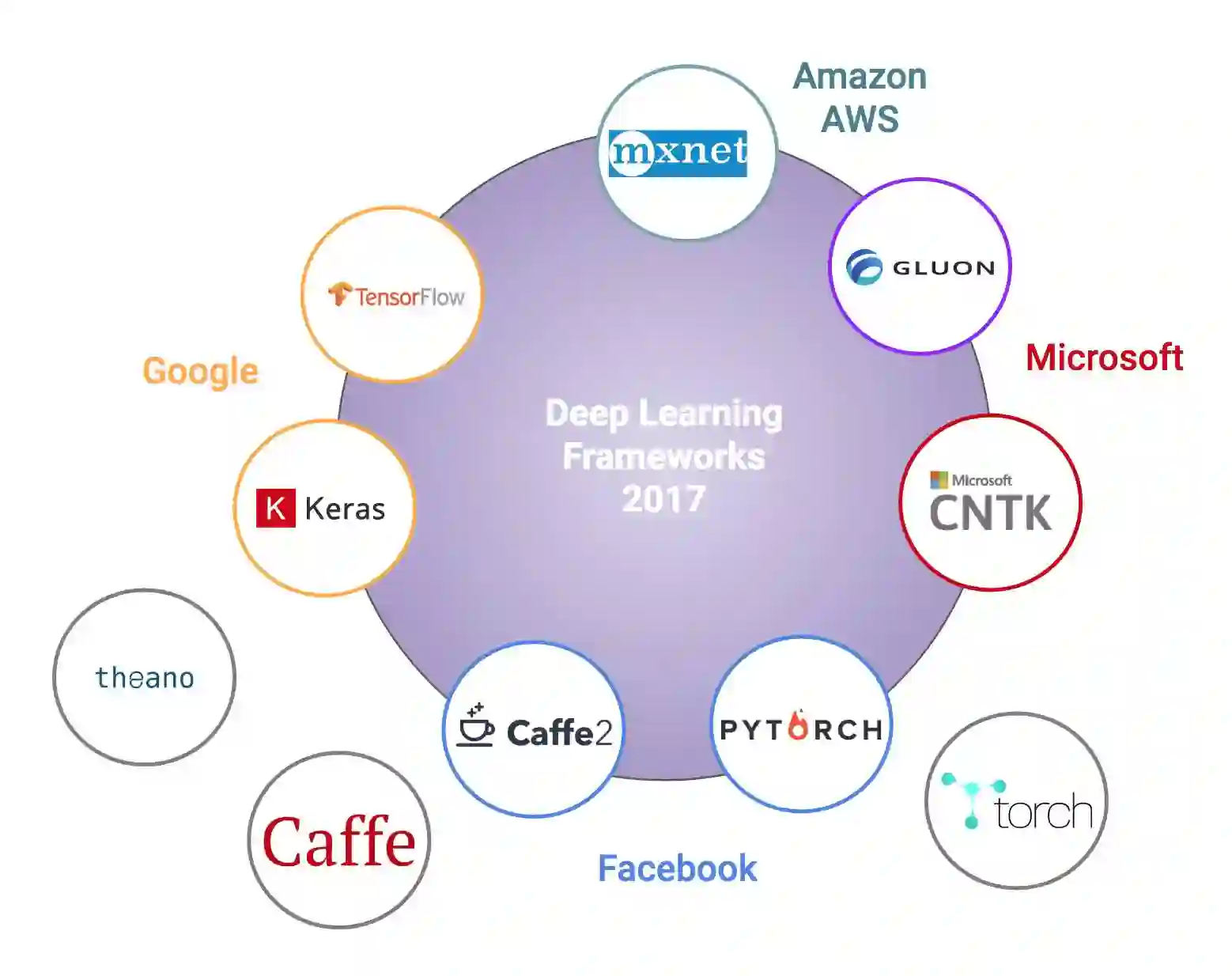 其他科技巨头也坐不住了。微软开发了名为CNTK的内部深度学习框架,在2017年正式推出2.0版本,并将其重新命名为微软认知工具包(Microsoft Cognitive Toolkit)。 2017年,Facebook还推出了Caffe2。它将成为众所周知的Caffe框架的继承者。Caffe框架最初是伯克利视觉和学习中心开发的,现在仍然非常受欢迎,这是由于它的社区性质,它是计算机视觉的应用程序,以及它的Model Zoo ——一系列预训练的模型。不过,Caffe2似乎还没有跟上Caffe的脚步。