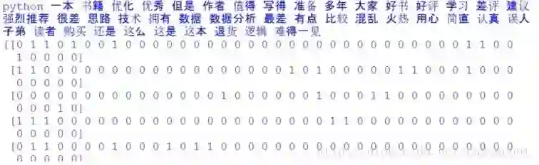 输出结果如下所示,可以看到预测的两个值都是正确的。即“一本优秀的书籍,值得读者拥有。”预测结果为好评(类标1),“很差,不建议买,准备退货。”结果为差评(类标0)。