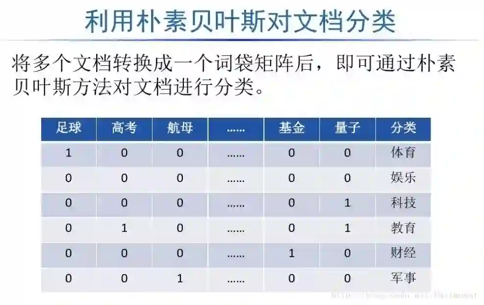 多项式朴素贝叶斯:sklearn.naive_bayes.MultinomialNB(alpha=1.0, fit_prior=True, class_prior=None)主要用于离散特征分类,例如文本分类单词统计,以出现的次数作为特征值。