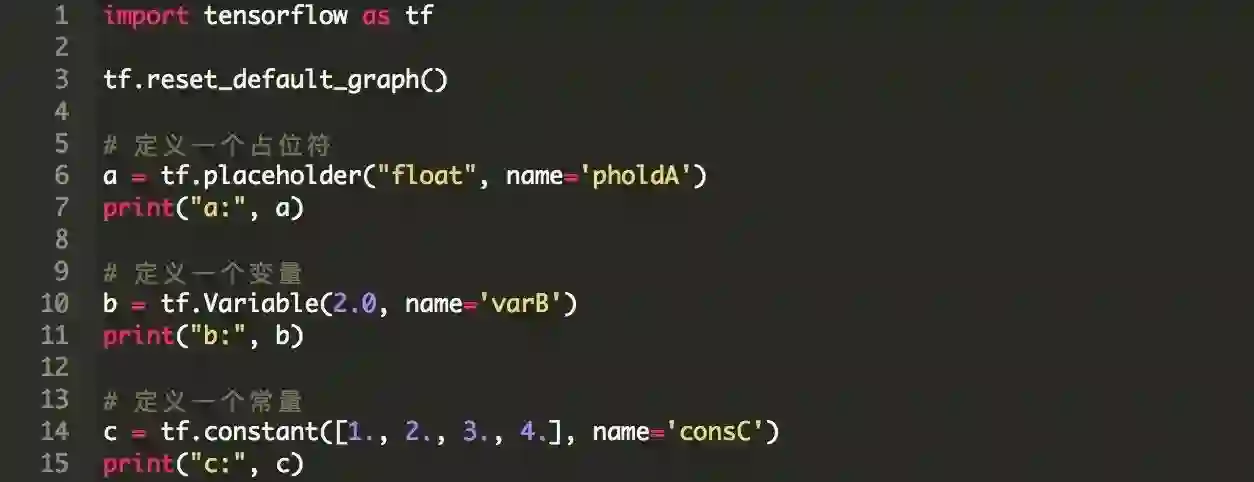 张量是TensorFlow中的基本数据结构,它存储任意维数的数据,类似于NumPy中的多维数组。 张量有三种基本类型:常量,变量和占位符。